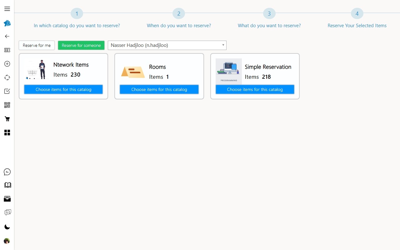 Depuis le catalogue, les utilisateurs peuvent effectuer une réservation au nom d’un autre collaborateur. Cette fonctionnalité est idéale pour les assistants, les gestionnaires ou les équipes support qui planifient l’utilisation des ressources pour d’autres membres de l’organisation.