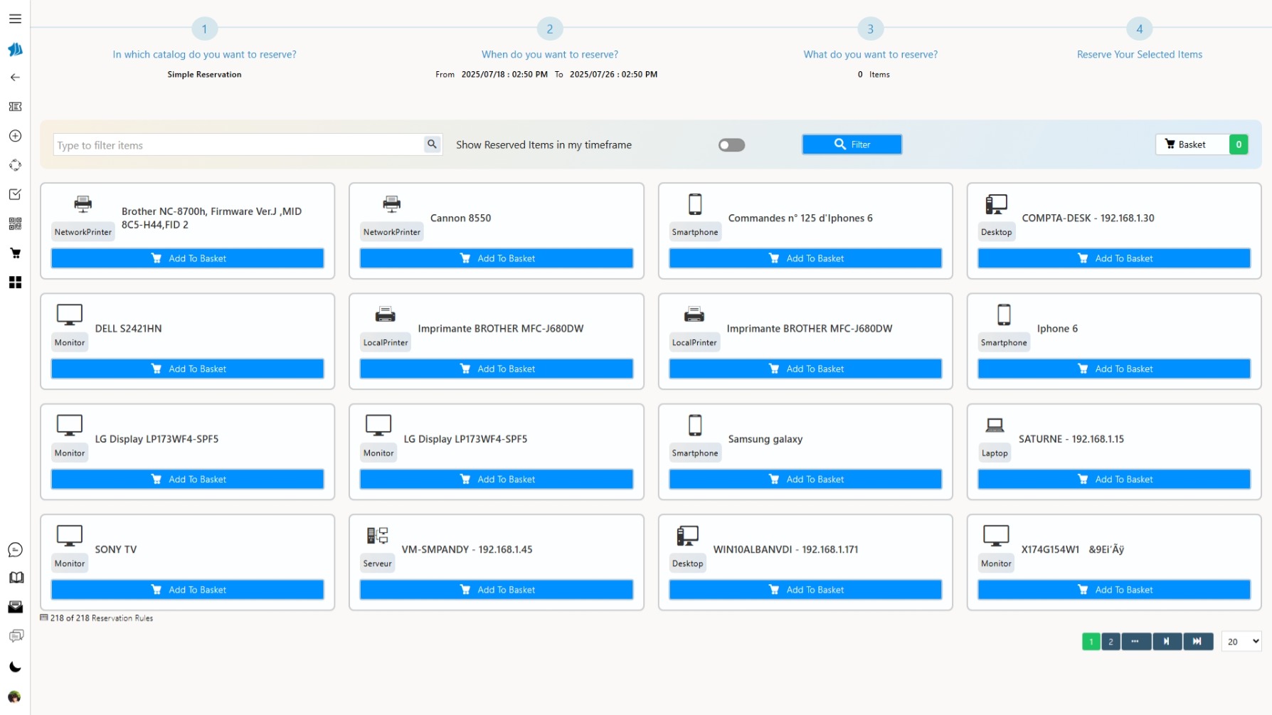 Connecté à vos bases ITAM (équipements) et de localisation (salles), le module exploite vos référentiels existants sans ressaisie. Vous filtrez simplement les ressources à rendre disponibles à la réservation, selon les services, types ou localisations souhaités.