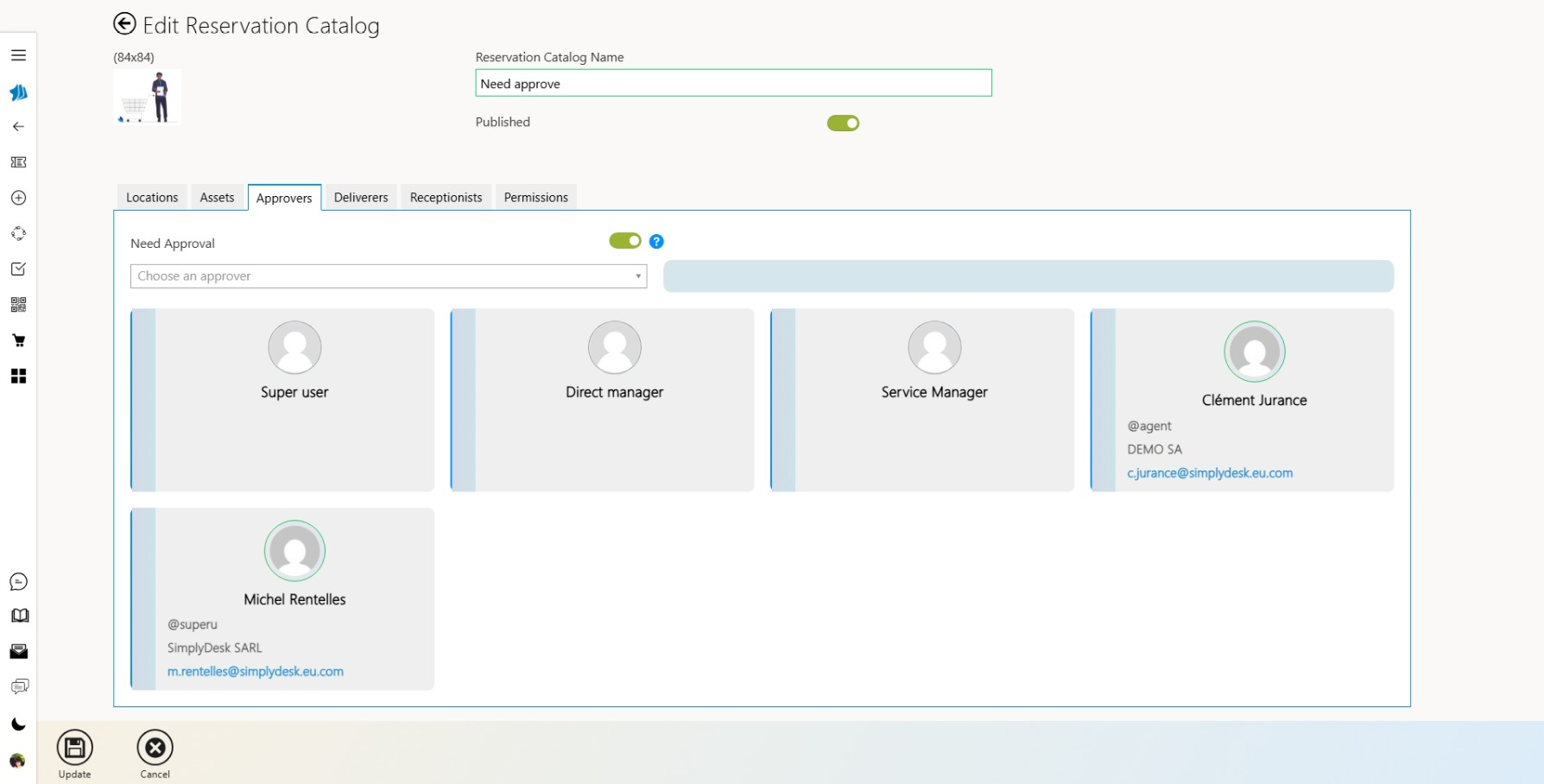 Oui, SimplyDesk permet de constituer un panier multi-ressources : un utilisateur peut réserver en une seule fois une salle, un ordinateur et un vidéoprojecteur, avec une validation globale de l’ensemble.