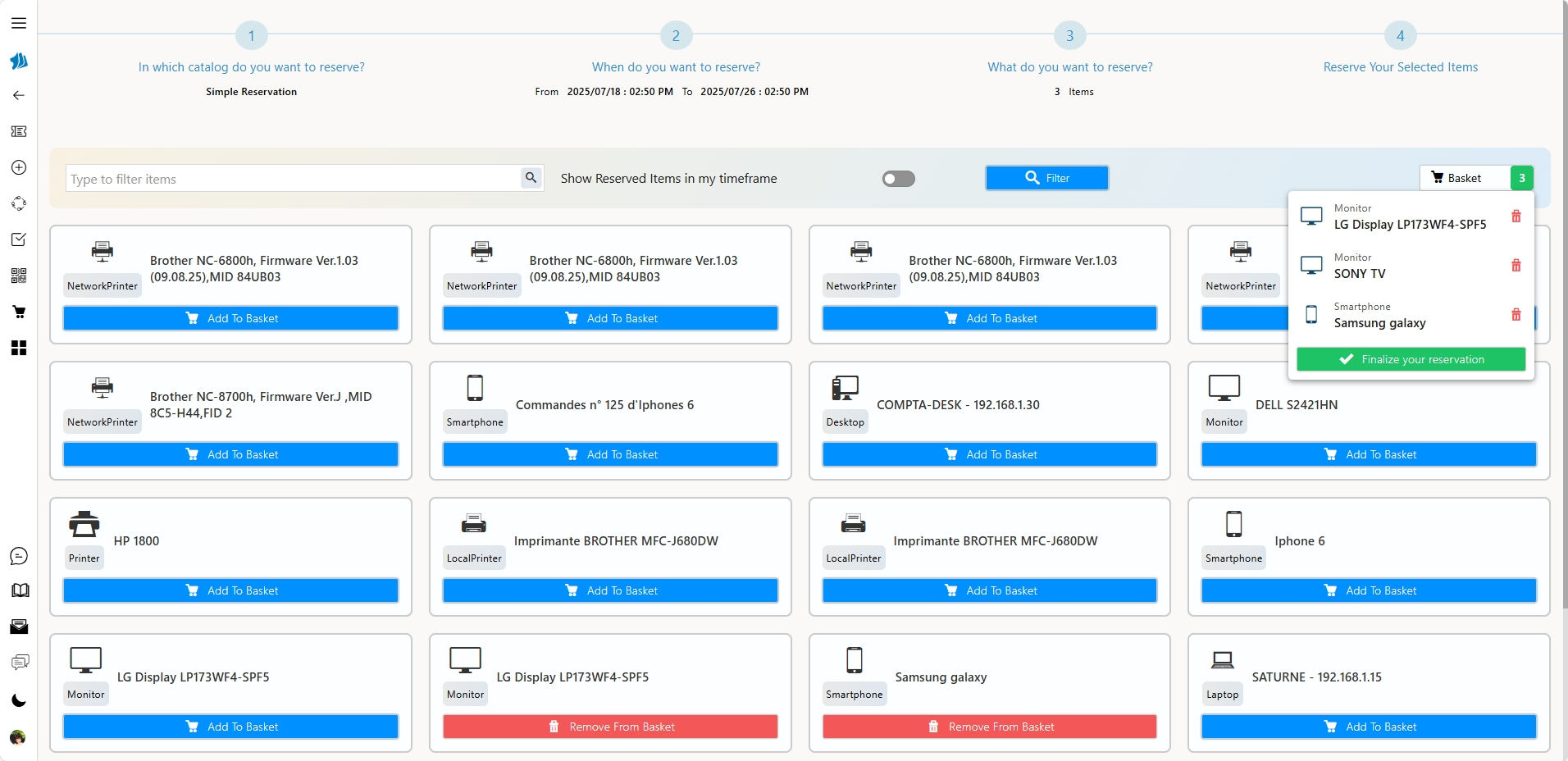 Réservez plusieurs ressources en une seule demande : une salle, un vidéoprojecteur et un ordinateur peuvent être associés dans un panier cohérent, validé globalement.