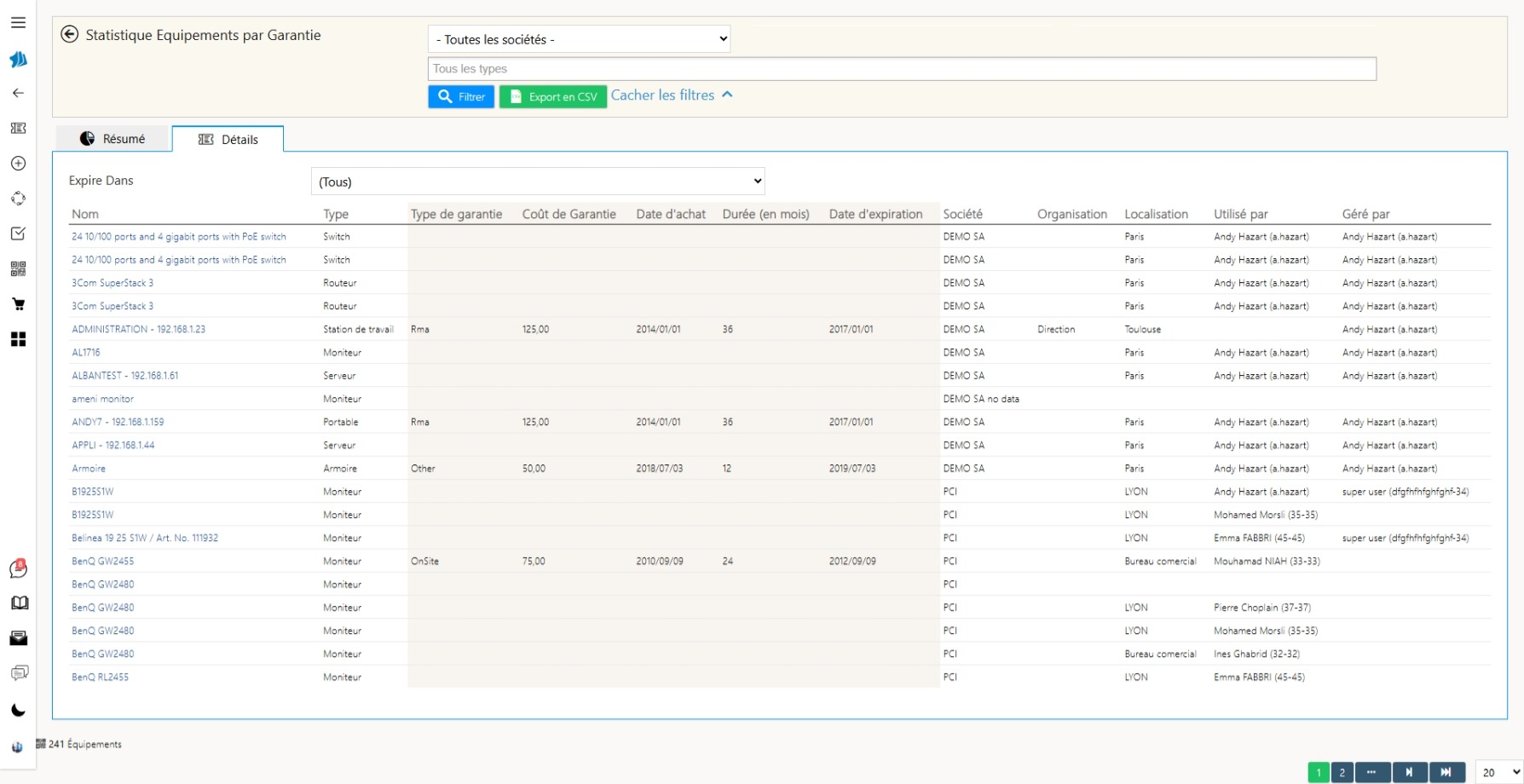 Grâce aux données issues de l’inventaire, vous pouvez suivre l’évolution de votre parc, anticiper les renouvellements et améliorer l’utilisation de vos ressources :